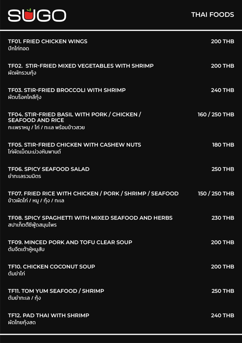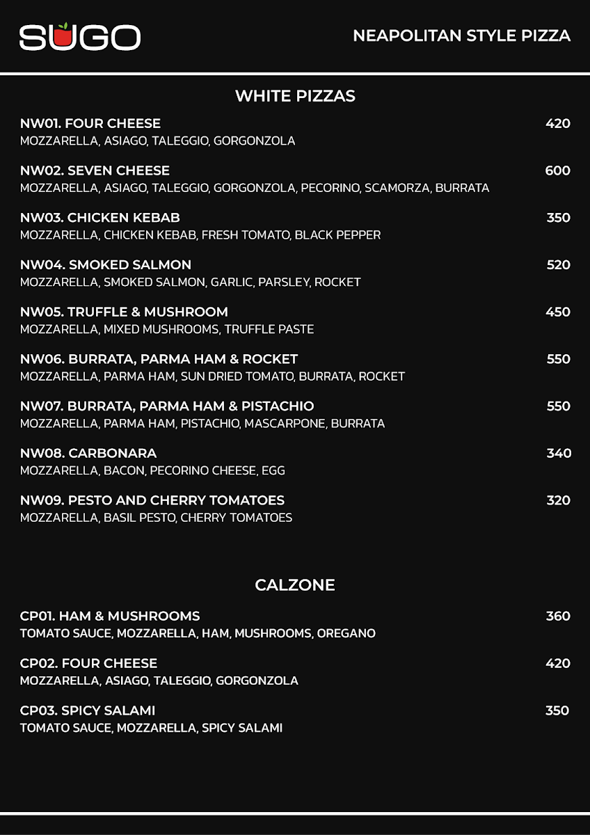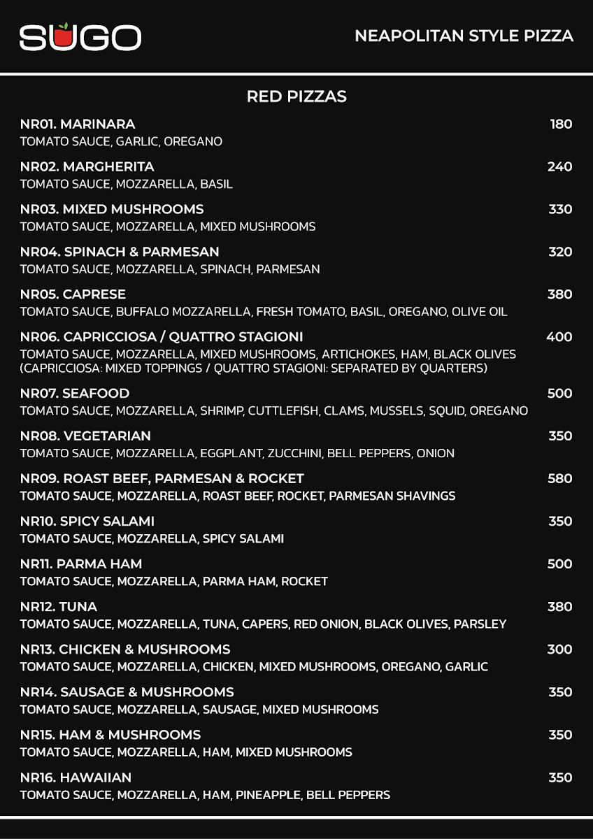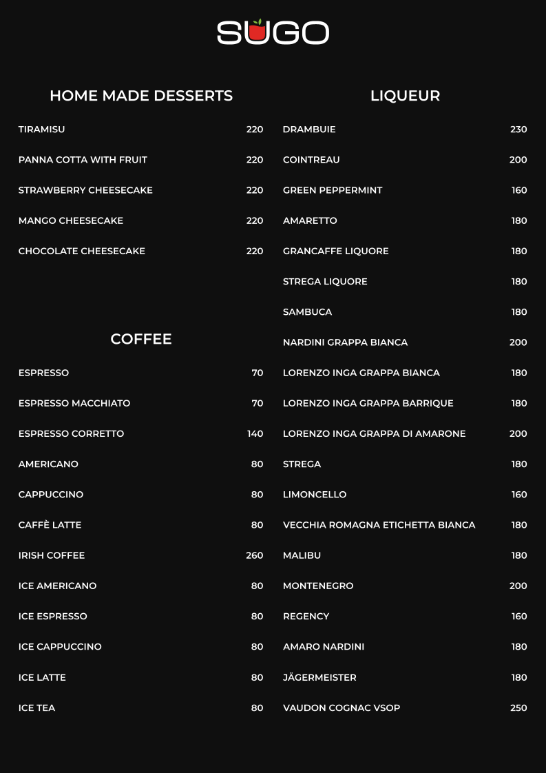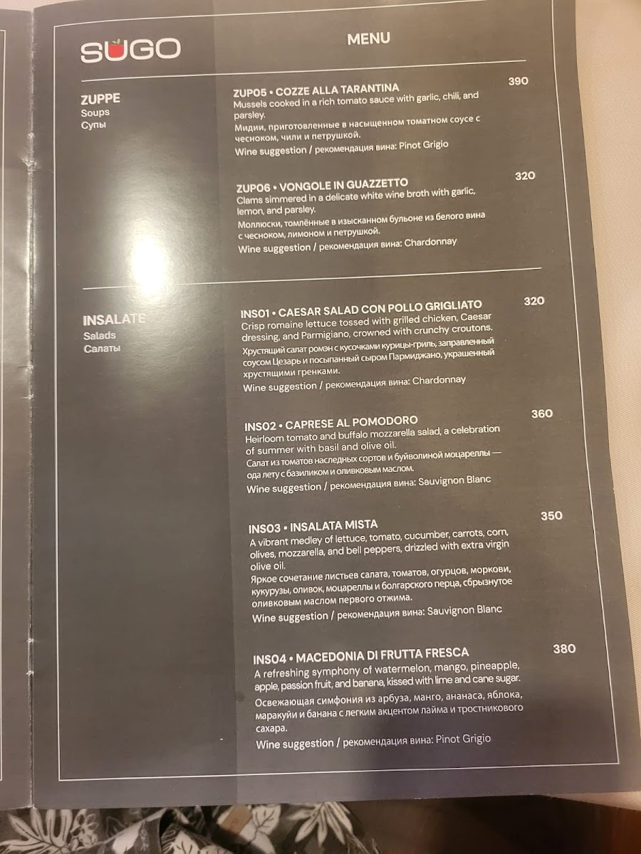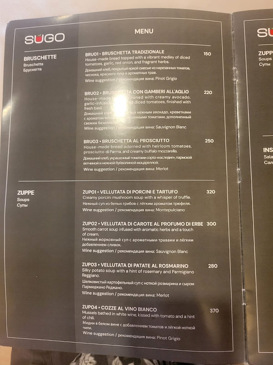 Sugo Italian Restaurant Menu